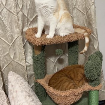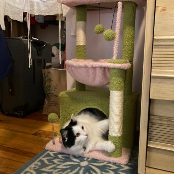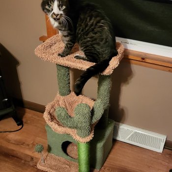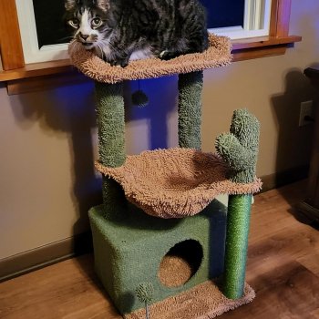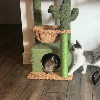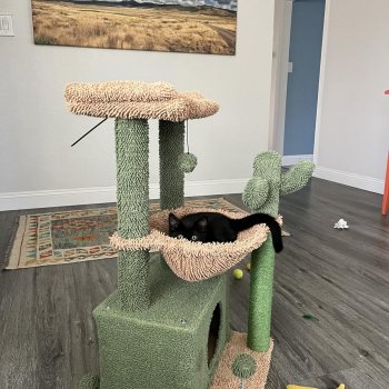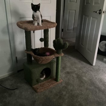 Recently adopted kittens (13 weeks old now) and they fell in love with this once it was together (and while I was putting it together). They are constantly fighting over who gets to sleep in the hammock. Can fit 1,2, or 3 kittens in the hammock (comfortably? Probably not but they look like they’re enjoying it). Sturdy enough to handle nonstop kitten zoomies complete with flips and other acrobats without falling over. 10/10