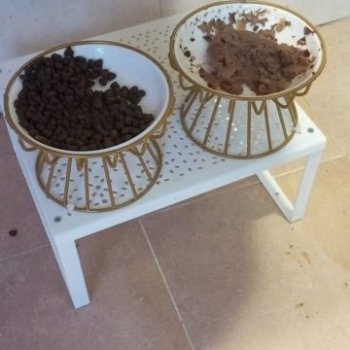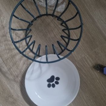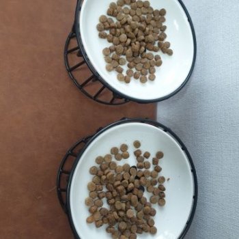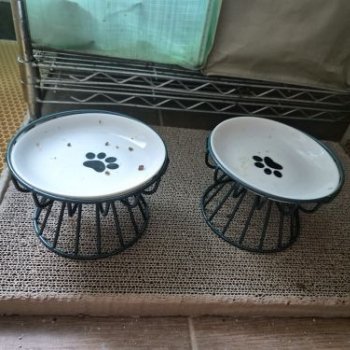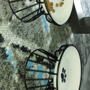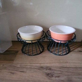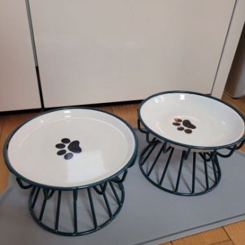 • Iron Rack Support: The sturdy iron rack provides stability, preventing the bowls from tipping over and keeping your pet’s feeding area tidy.