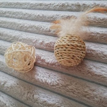 Make playtime more exciting for your cat with this set of 2 interactive cat toys. Crafted from durable rattan and faux feathers, these toys are designed to captivate your kitty’s attention and stimulate their natural hunting instincts. Whether it’s batting at the rattan ball or chasing the feathered bell ball, your cat will love the thrill of the chase, providing them with endless hours of entertainment and exercise.