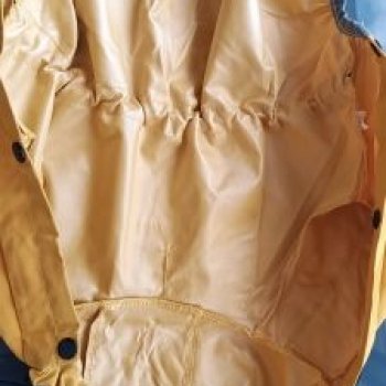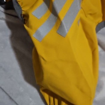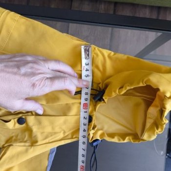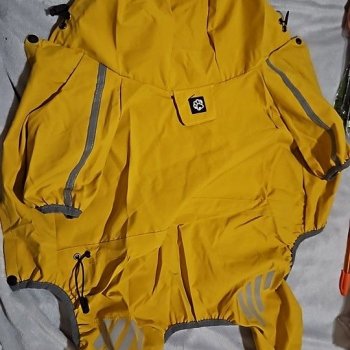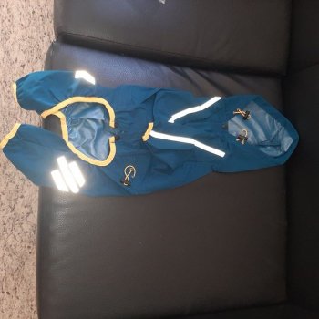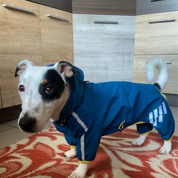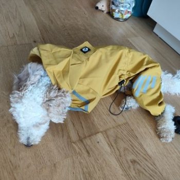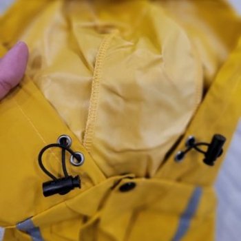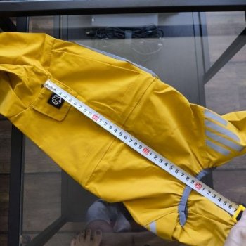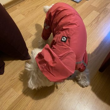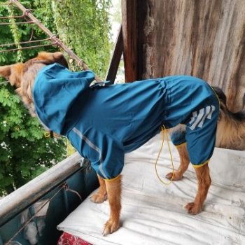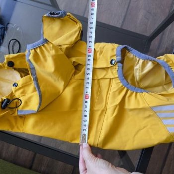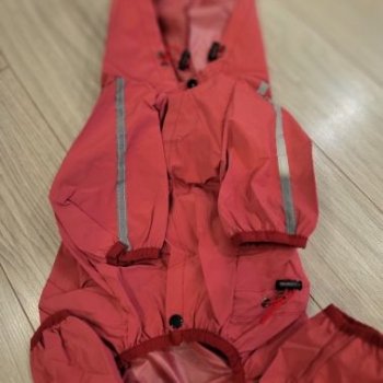 A wonderful high-quality raincoat, neatly sewn, threads do not hang, my 6-month rate is 4 kg suitable, a little wide.
